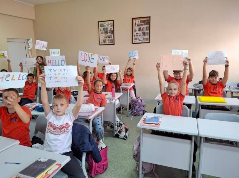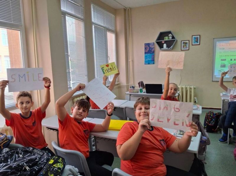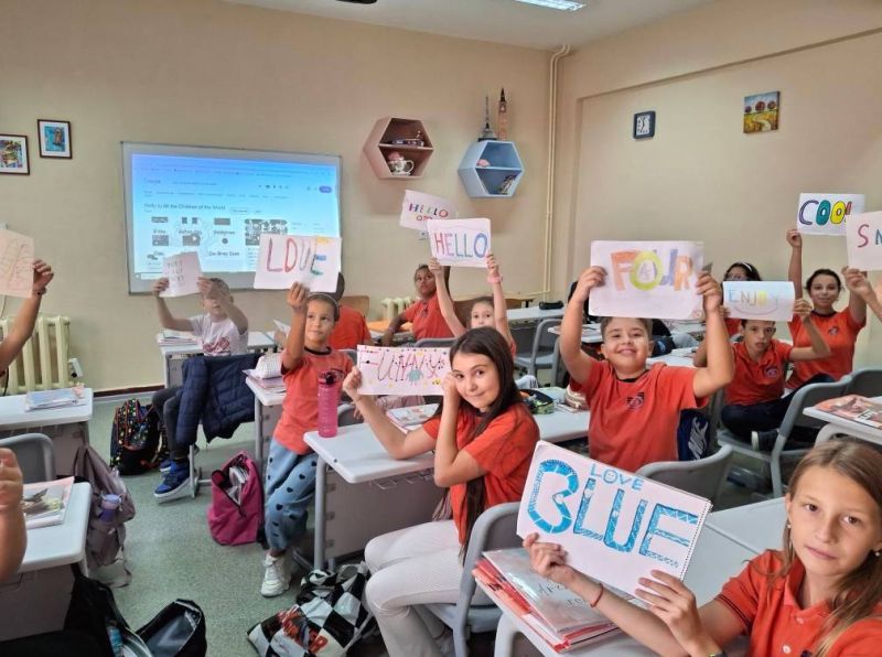 Петокласниците изготвиха проекти с любима дума на английски език и изпяха песента "Hello to all the children of the world".