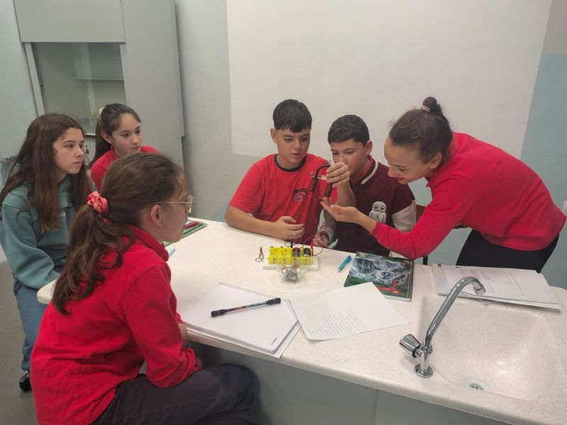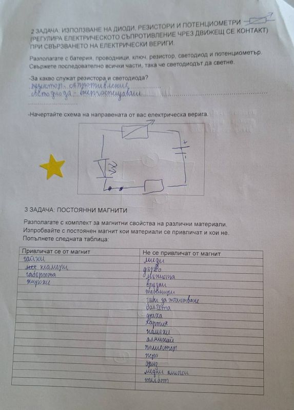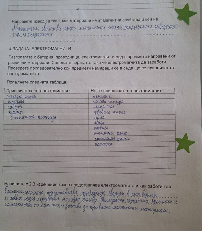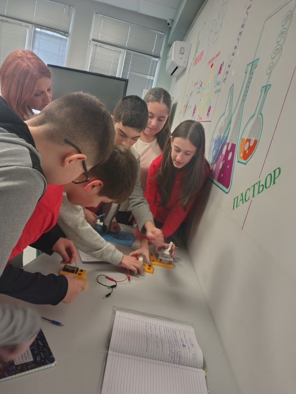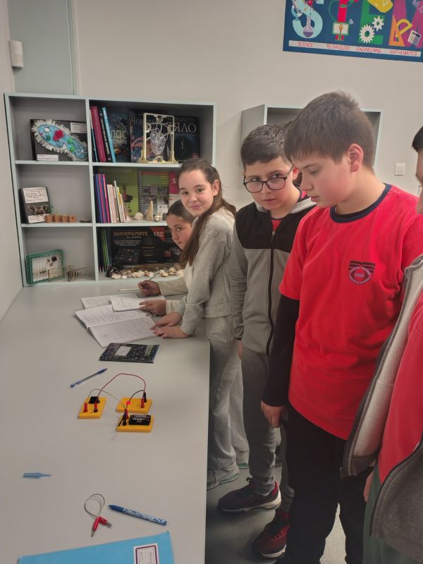 Днес учениците от 6. "б" клас участваха в малко по-различен и интересен час по ИУЧ човекът и природата. В обобщителната тема "Електричество и магнетизъм" учениците имаха възможност да работят по метода на "работните станции". Чрез този иновативен метод те имаха възможност последователно да преминат през четири станции и да се справят сами със сглобяването на електрически вериги, да преобразуват електрическата енергия в светлина, звук и движение, да работят с постоянни магнити и да изпробват как работят електромагнитите. Учениците попълваха и работни листове след приключване на всяка практическа задача. Те се справиха отлично, бяха много активни и работиха с огромно желание да се справят добре.
